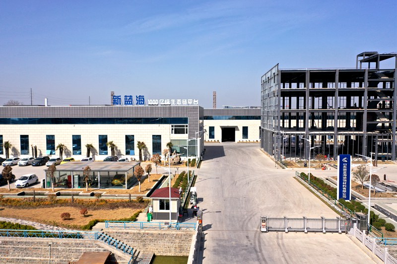 山東新藍(lán)海三層鋼梁吊裝