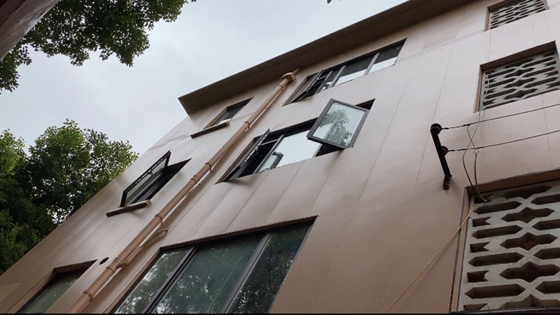 保溫裝飾一體化產(chǎn)品表面采用阻燃B級金屬復(fù)合板作為裝飾層,永不開裂,具有極佳的耐候性,并且強度遠(yuǎn)遠(yuǎn)高于抹面砂漿和耐堿網(wǎng)格布,抗沖擊、抗風(fēng)壓性好。